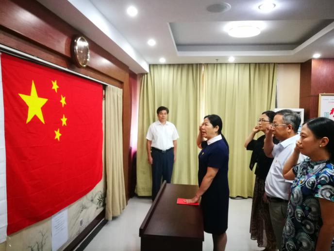 仪式上,出席人员全体起立,齐唱中华人民共和国国歌,熊晓蕾、杨桦、赵小春和石宇坤4位新任职的正处级干部面向国旗,高举右拳,向宪法许下铮铮誓言:“我宣誓:忠于中华人民共和国宪法,维护宪法权威,履行法定职责,忠于祖国、忠于人民,恪尽职守、廉洁奉公,接受人民监督,为建设富强民主文明和谐美丽的社会主义现代化强国努力奋斗!”